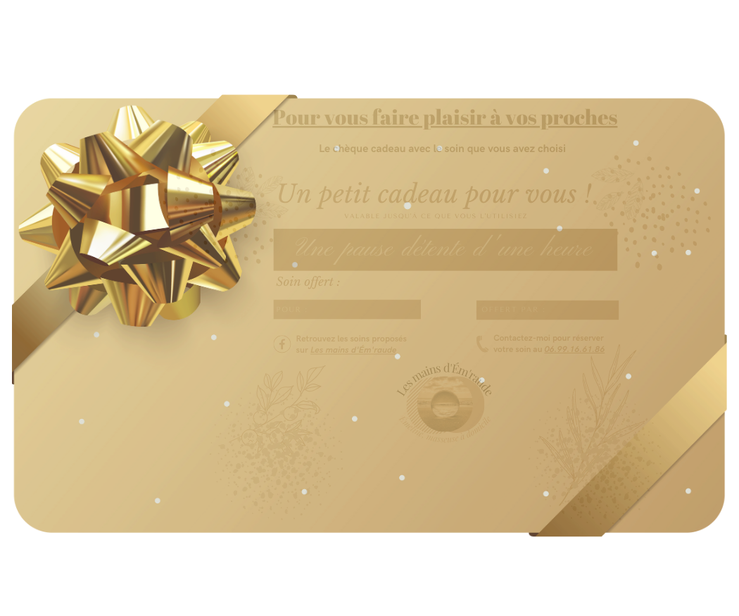 Le massage est pour moi bien plus qu’un simple moment de relaxation : c’est une véritable base thérapeutique qui permet de valoriser l’image du corps, d’apaiser les tensions et d’offrir un espace de lâcher-prise en profondeur.