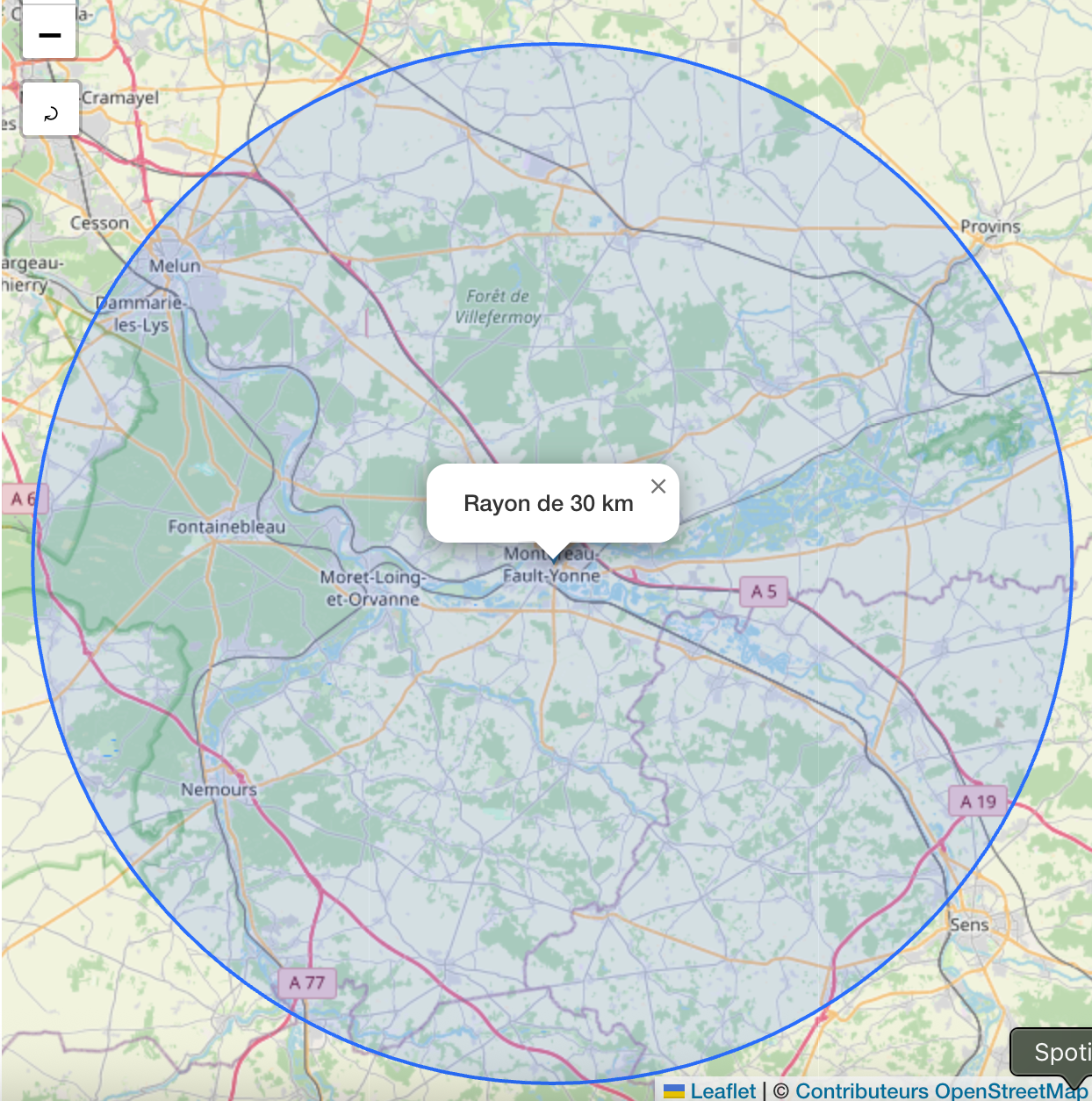 Rayon: 30 kmGlissez/zoomez la carte. Cliquez sur le disque pour plus d'infos.